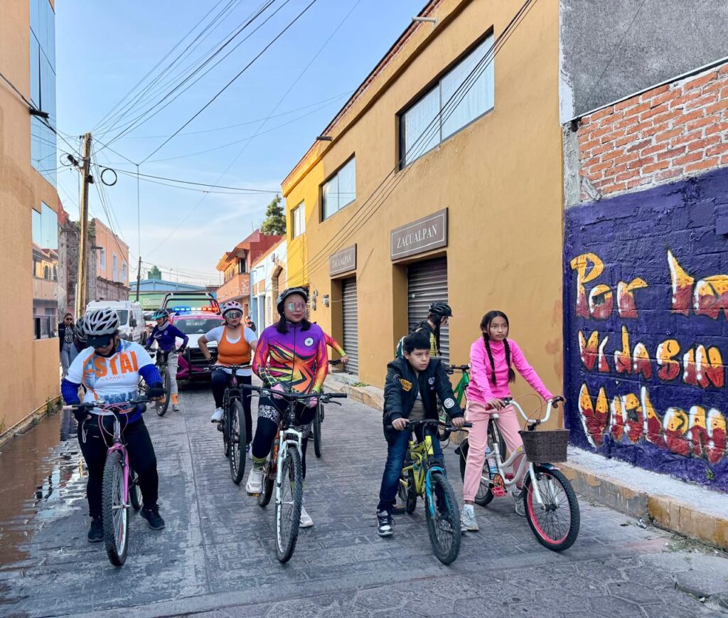 La jornada inició desde temprana hora con la participación del colectivo Bici Amigas, quienes encabezaron el recorrido por distintas calles del municipio. A través de esta iniciativa, se buscó generar un espacio de convivencia segura, fomentar la participación comunitaria y recordar que la prevención de la violencia es una responsabilidad compartida entre instituciones y ciudadanía.
